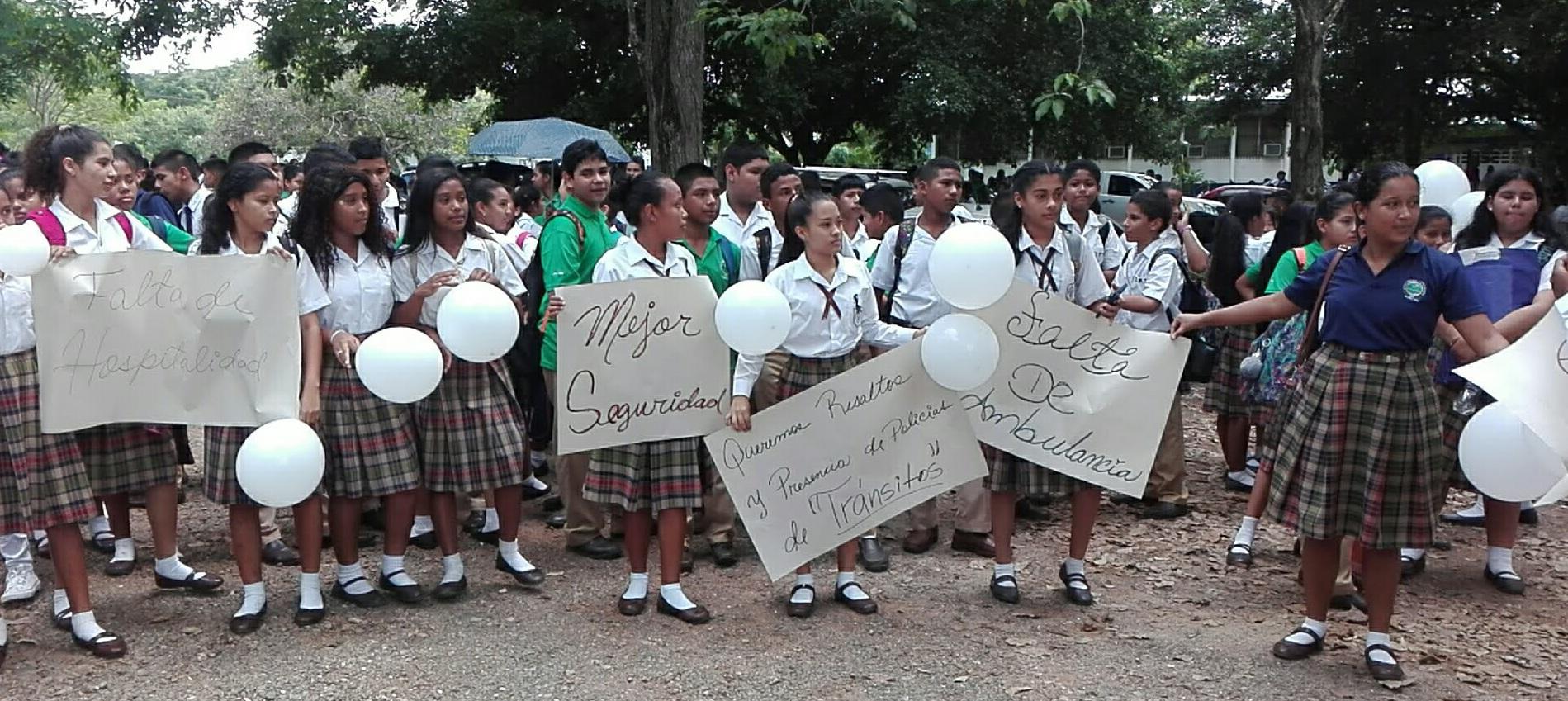 Los estudiantes y docentes de este plantel piden mayor seguridad vial y la consecución de una ambulancia para el distrito, ya que raíz del accidente de tránsito hubo que esperan una hora y media para la llegada de una ambulancia desde Chame.