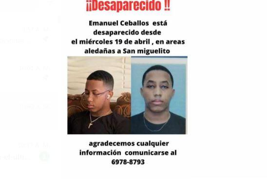 Emanuel Ceballos, de 18 años, se encuentra desaparecido desde el miércoles pasado a la 1:11 de la tarde, cuando fue visto por última vez en el distrito de San Miguelito.