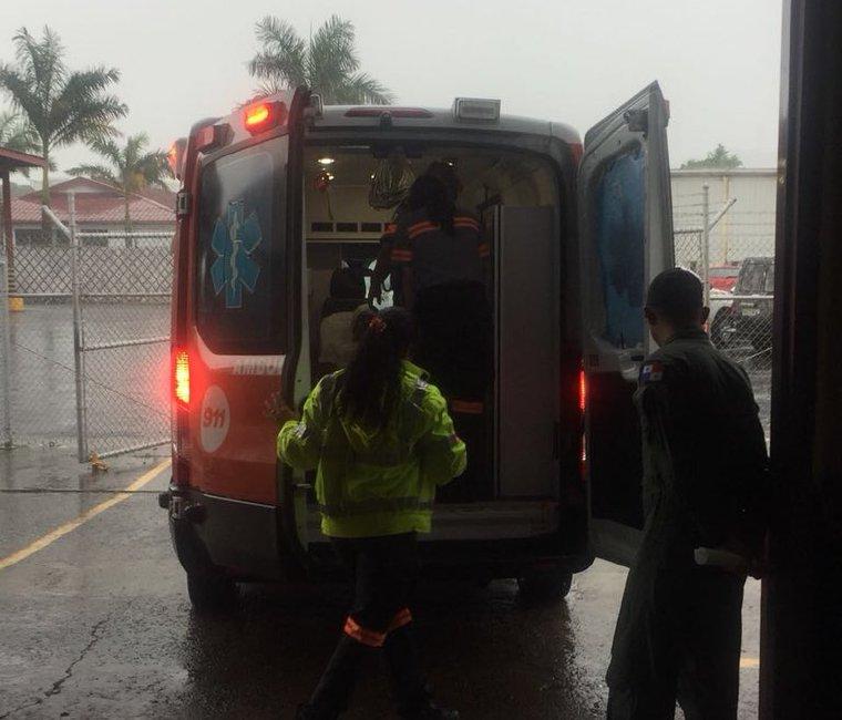 El paciente fue trasladado ayer, domingo, en horas de la tarde, bajo la torrencial lluvia, en el helicóptero AN-110 del Servicio Nacional Aeronaval (Senan) desde la apartada comunidad hacia la antigua base en Howard, ubicada en el distrito Arraiján. Fue llevado de inmediato en ambulancia del Servicio Único de Emergencias Médica (SUME911) al Cuarto de Urgencias del Hospital Santo Tomás, donde se le mantiene recluido y en estado delicado, se informó.