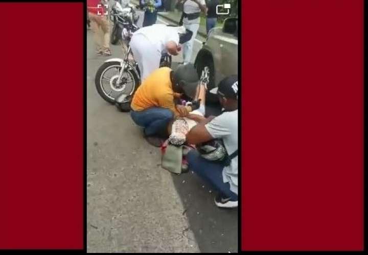 La joven que se transportaba con direccción al parque Omar en una moto colisionó con un auto. Producto de este impactó recibió fuerte golpes en su anatomía y su pierna izquierda se partió en tres partes.
