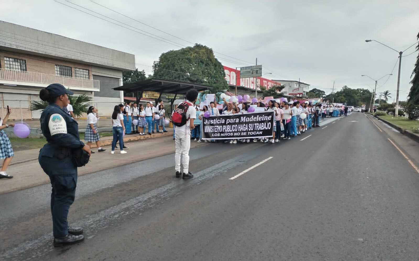 En una pancarta que portaban varios estudiantes se leía Justicia para Madeline. Ministerio Público Haga su Trabajo. Los Niños no se Toca.
