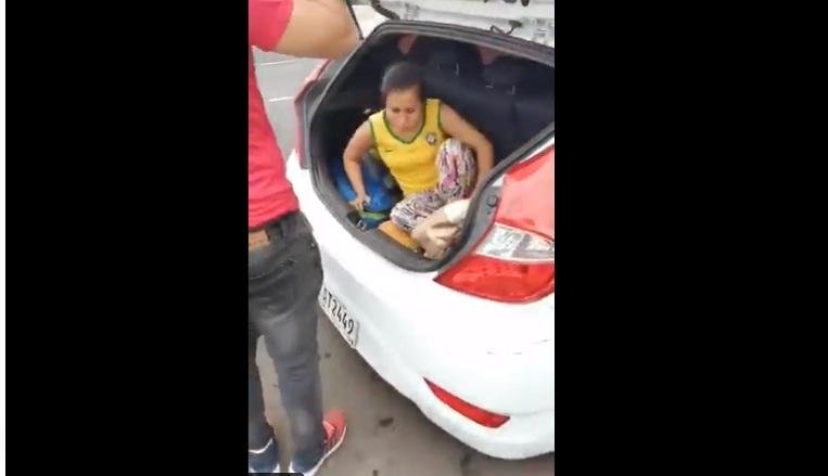 Ante la negativa del conductor, los uniformados procedieron a revisar el vehículo, encontrando a una mujer en el maletero del auto.