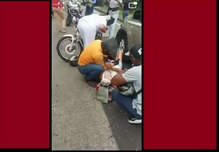 En la grabación se observa a una joven, quien se aferraba a la mano de un motorizado, que está de rodillas junto a ella, brindando ayuda.