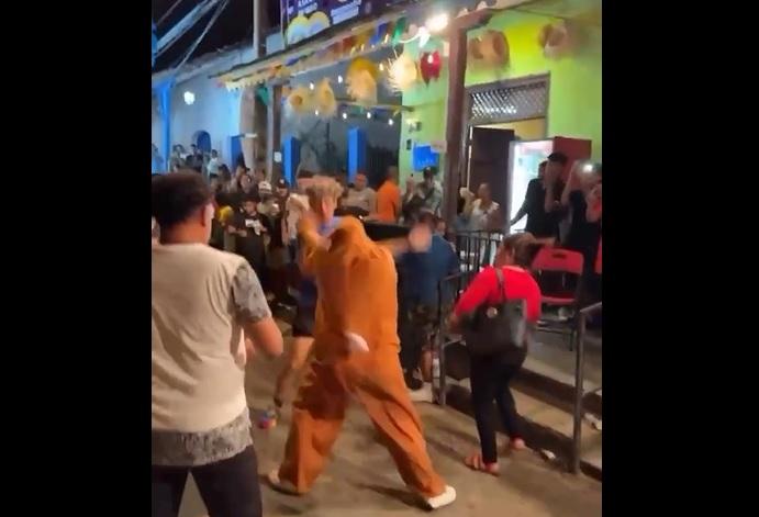 Videos que circulan en redes muestran a miembros de ambas tunas metidas en la trifulca, mientras otros intentaban separarlos. En el caos, también se observa a un hombre vestido con un disfraz de venado, quien resultó ser "La Tinto" que al ritmo de la música que seguía sonando y de los gritos de quienes presenciaban la pelea, arremetía a su contrincante a puño limpio.