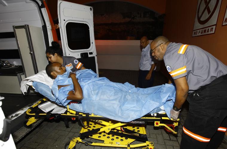 El herido fue trasladado primeramente al Cuarto de Urgencias de la policlínica J.J. Vallarino en Juan Díaz, para luego ser remitido al Hospital Santo Tomás, donde se le mantiene recluido. Presenta dos heridas en el antebrazo izquierdo, una en el costado derecho, una en la cadera derecha y una en el glúteo.