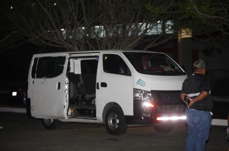 Producto de los impactos de bala, el vidrio de la puerta trasera del ‘pirata’ quedó quebrado, en la carrocería del transporte se observaron al menos cinco orificios que dejaron la entrada de los proyectiles.