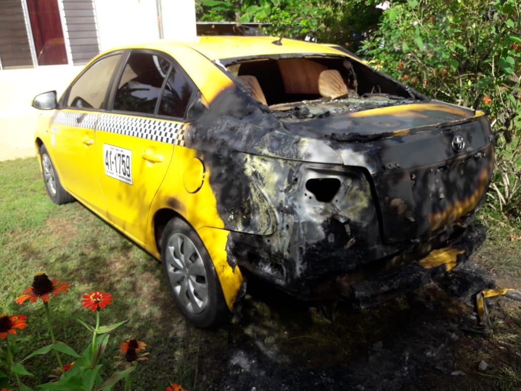 Un vehículo taxi con placa 4T1759 fue quemado en las afueras de la residencia del propietario la madrugada de este martes en el sector de Brisas del Río en el distrito de David, presuntamente , ya que el dueño es parte del grupo de transportistas que se oponen a la entrada de nuevos certificados de operación.