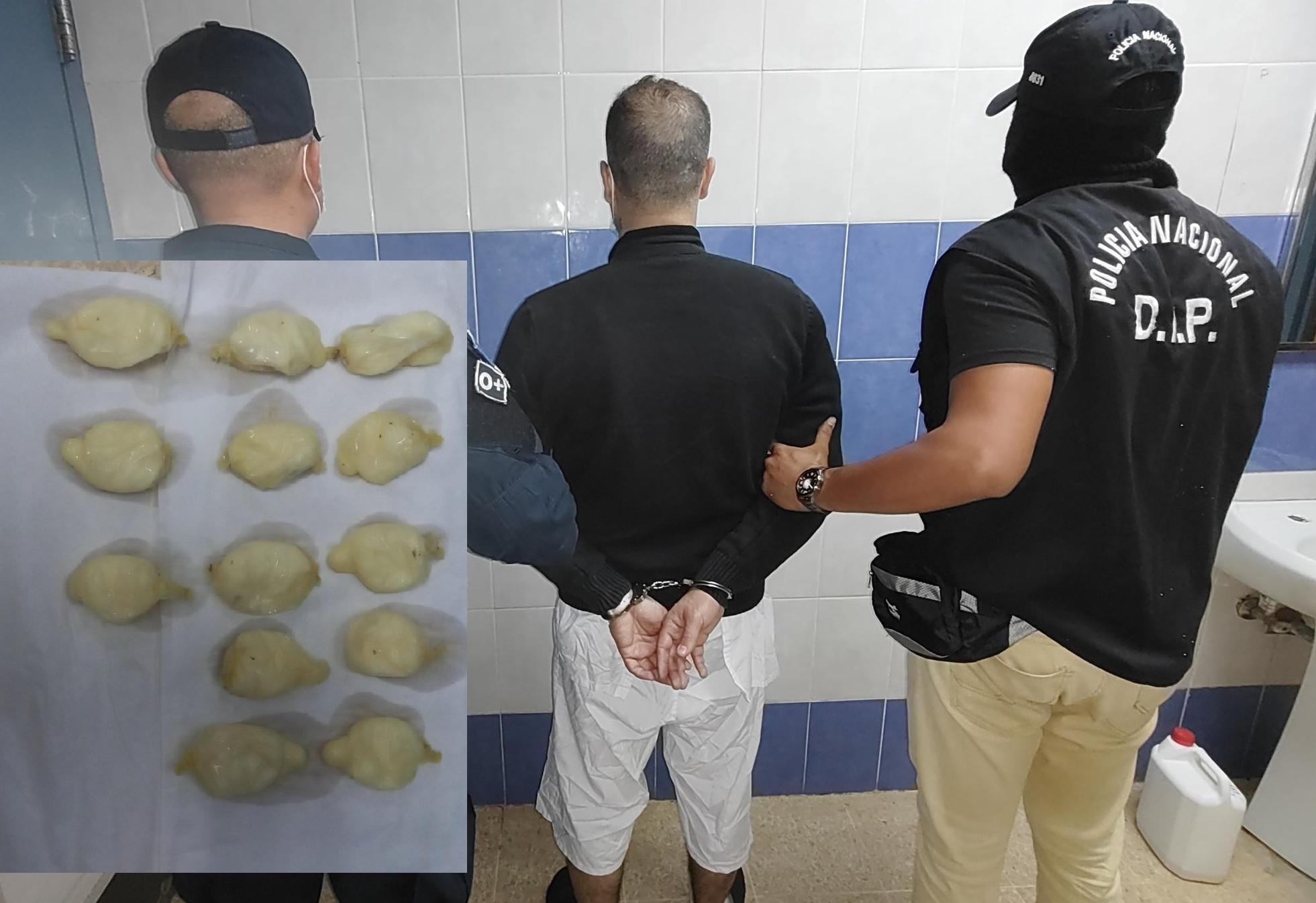 Unidades de la Policía Nacional aprehedieron al libanés, luego de que este expulsó de su cuerpo la presunta droga.