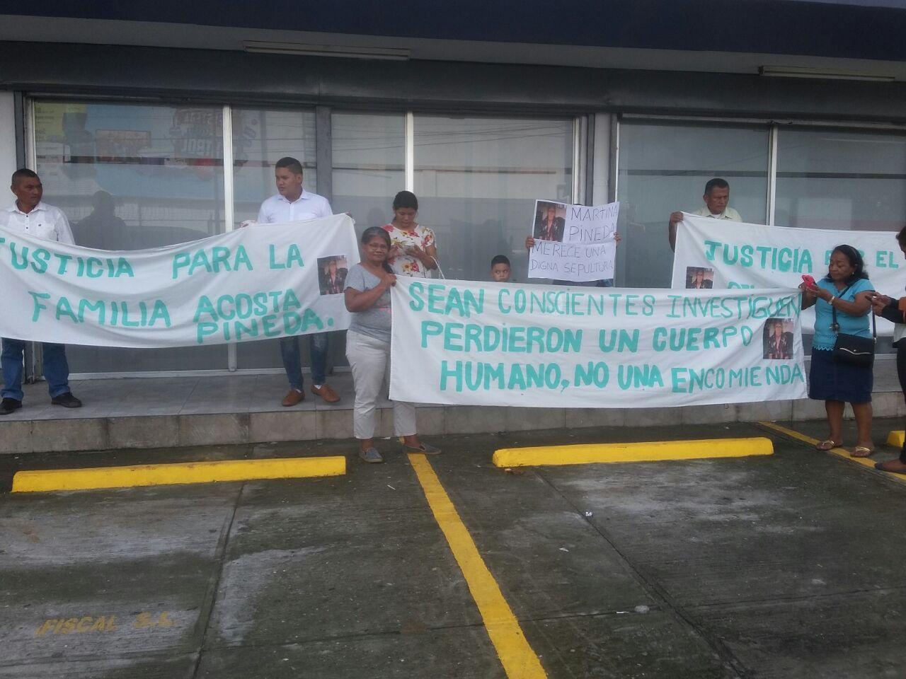Panamá- Familiares de la anciana Martina Pineda, quienes hicieron responsables de la desaparición de su cuerpo a una empresa funeraria, protestaron en la mañana de hoy frente a las instalaciones del Ministerio Público en Calidonia.