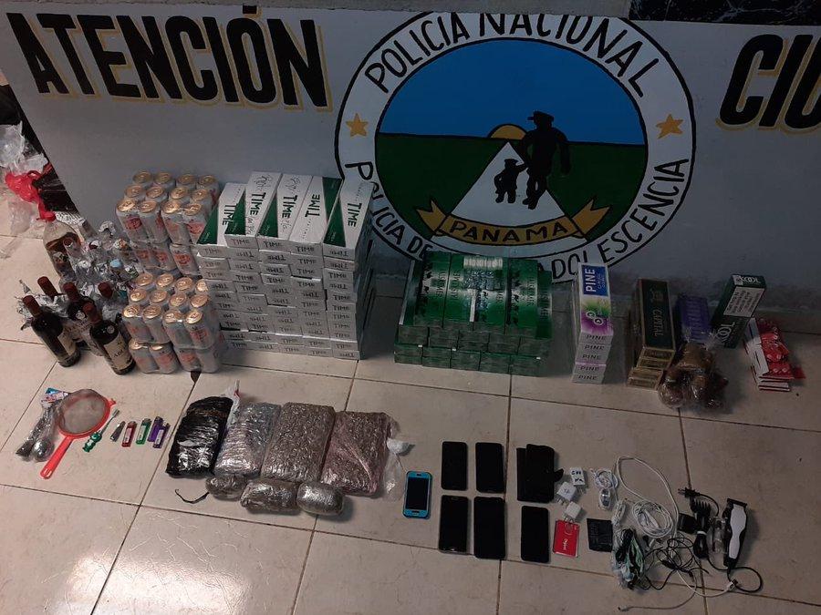 Unidades de policiales del sector de Arco Iris, a través de un recorrido preventivo, capturaron a dos hombres en los alrededores del Centro Penitenciario Nueva Esperanza, provincia de Colón, quienes mantenían en su poder dos maletines que contenían cigarrillos, licor, celulares y presunta sustancia ilícita.