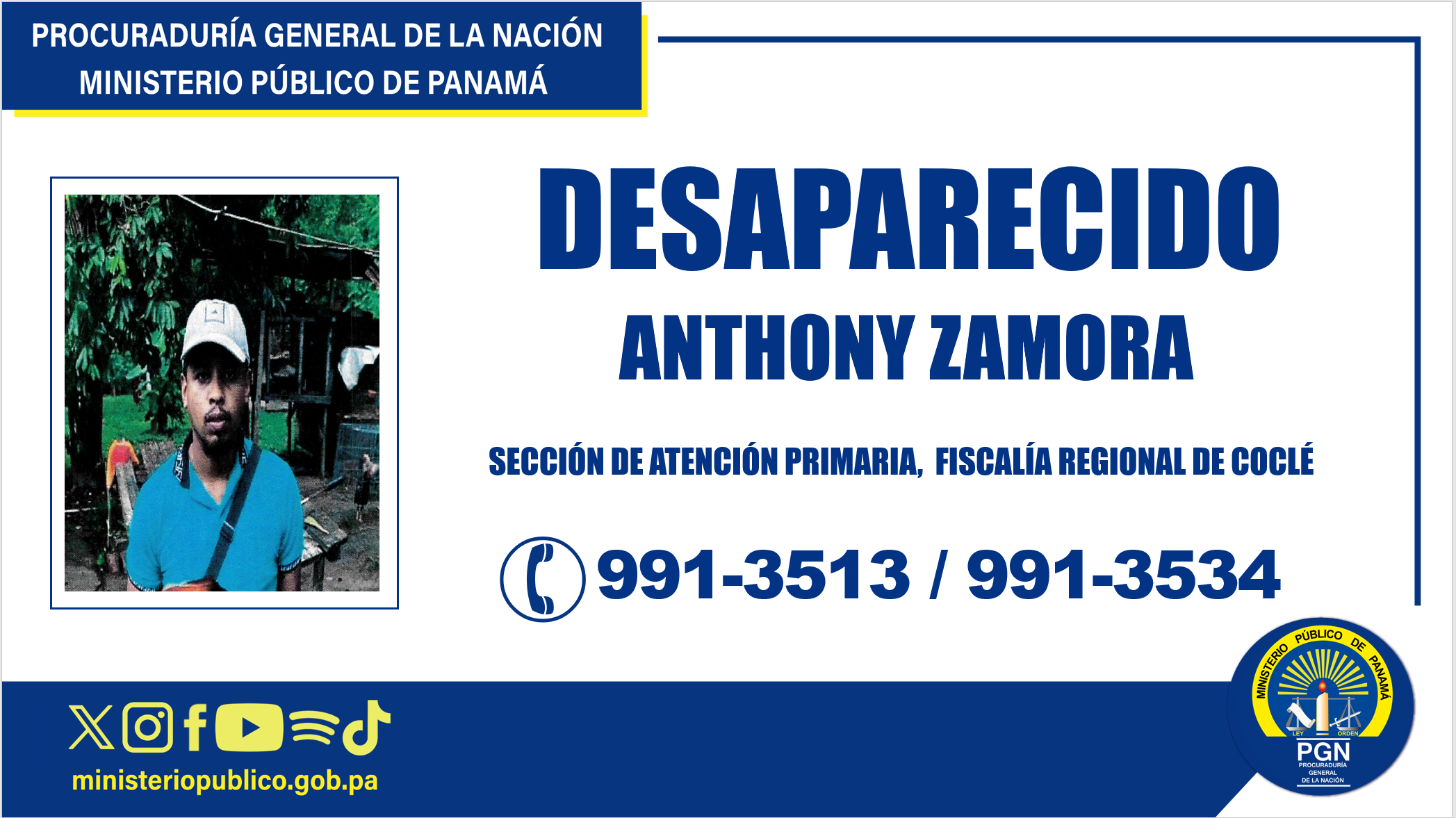 Los coclesanos están preocupados, porque en la provincia hay varios hombres reportados como desaparecidos. Entre los casos más recientes está el de Anthony Zamora (32 años), quien fue visto por última vez el pasado 5 de noviembre en El Bajito, corregimiento de Penonomé.