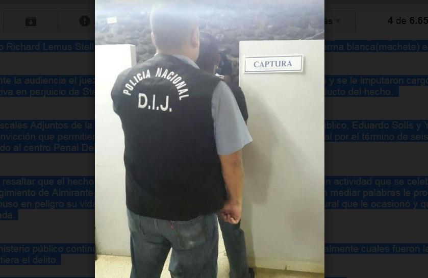Un ciudadano de 39 años de edad residente en la provincia de Bocas del Toro, la tarde de este martes se le ordenó la detención provisional, en una audiencia de control de garantías por su presunta vinculación a un hecho registrado para principios del mes de septiembre donde resultó herido Richard Lemus Stell Rodríguez, de 31 años, quien recibió una herida con arma blanca (machete) en la cabeza.