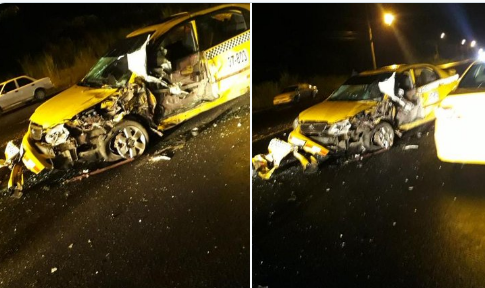 Los primeros informes indican que el conductor de un pick up trató de rebasar al taxi, sin embargo, lo colisionó y terminó volcado a orilla de la carretera.