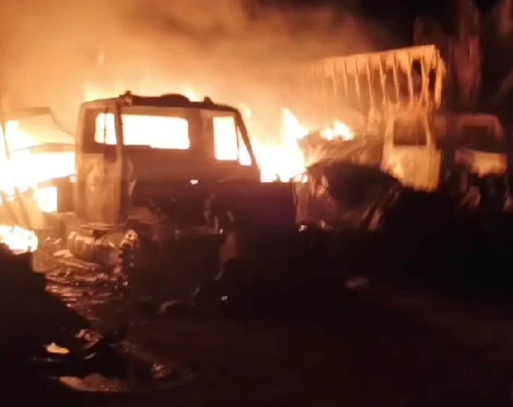 ¿Mano criminal? Arden en llamas 4 camiones en Colón [Video]