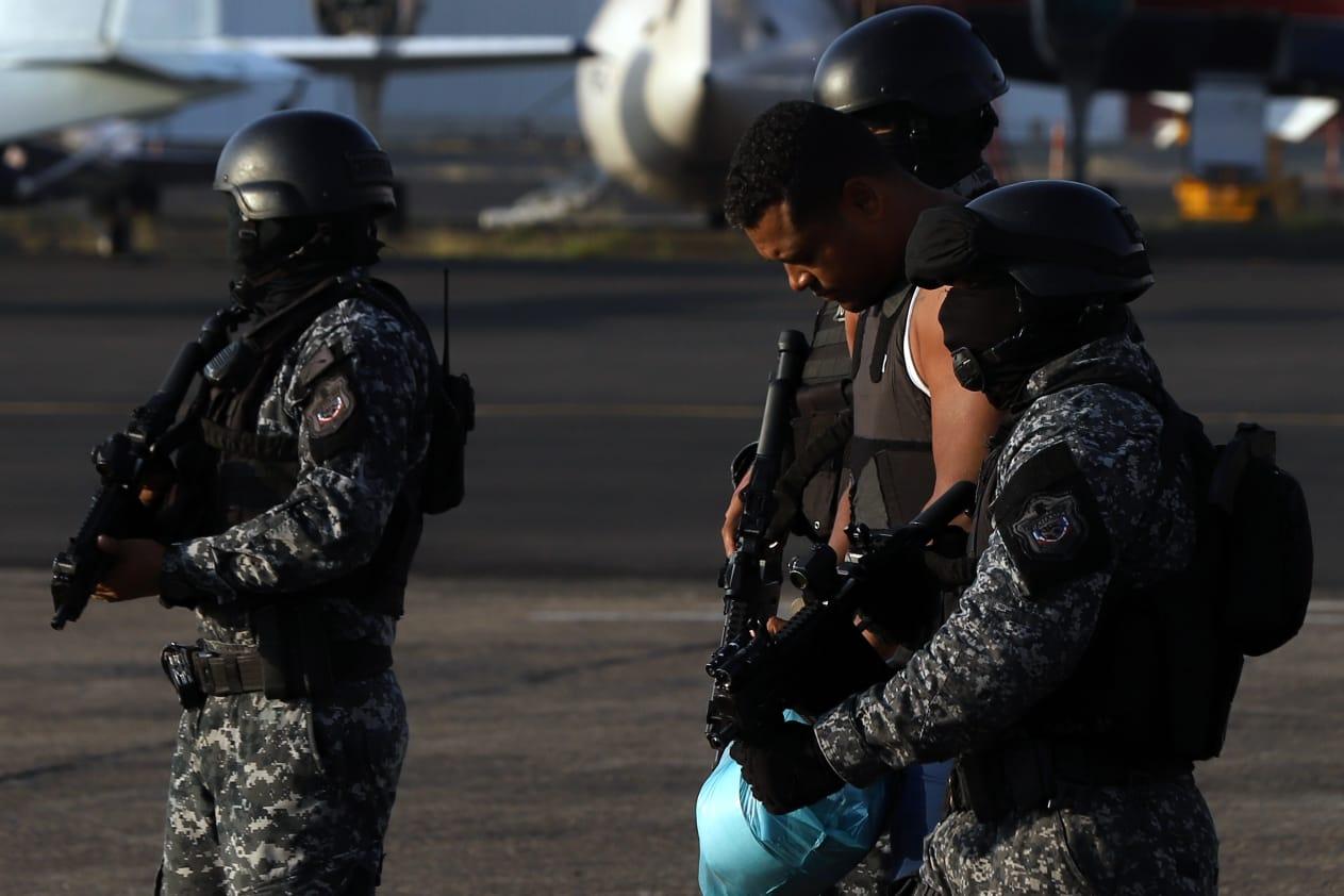 Eduardo Macea Alonzo, alias “Marshall”, fuertemente custodiado por unidades de la Policía Nacional llegó hoy, viernes al aeropuerto de Albrook para ser trasladado en un helicóptero del Servicio Nacional Aeronaval (Senan) hacia isla penal de Punta Coco.