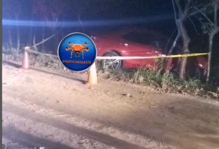 El hecho de sangre se registró cerca de la subestación de la Policía Nacional de Río Chico, donde el auto tipo sedán, marca Toyota Corolla, con matrícula CJ7770, de color rojo, terminó metido en una cuneta.
