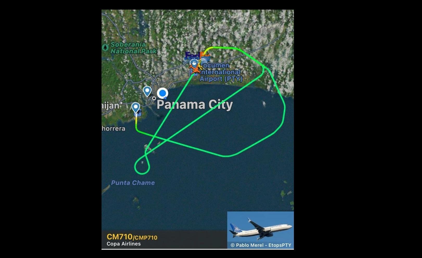 El avión despegó de la terminal Panamá Pacífico a las 9:31 de la mañana de este martes 27 de septiembre, pero pocos minutos después el vuelo fue desviado al aeropuerto de Tocumen, donde aterrizó sin dificultades a eso de las 10:13 de la mañana.