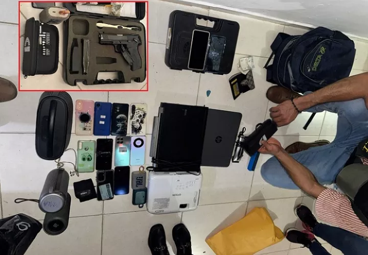 Durante la operación, las unidades recuperaron varios artículos de dudosa procedencia, entre ellos siete celulares de diferentes marcas y dos computadoras portátiles, así como también un arma de fuego marca Taurus calibre 45.