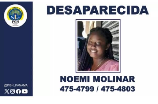 El Ministerio Público solicita ayuda para ubicar a la menor Noemí Molinar, quien ha sido reportada como desaparecida en Colón.