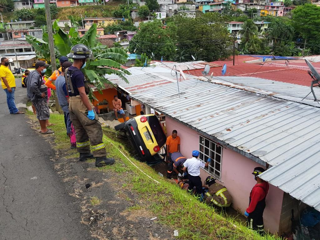 Un taxi terminó volcado a un costado de una casa localizada en el sector de La Providencia, Don Bosco, distrito de San Miguelito.
