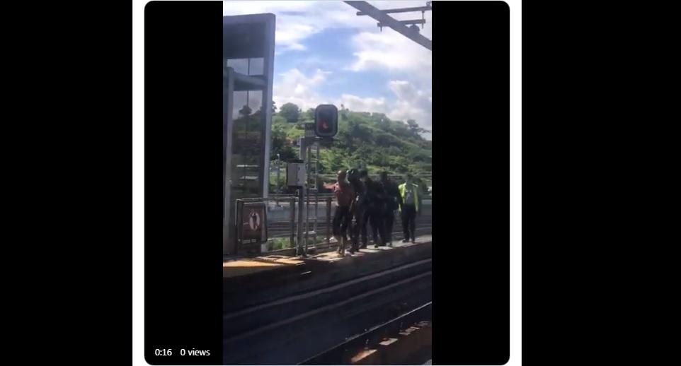 #SucesosCri Un hombre detuvo las operaciones del @elmetrodepanama al permanecer en una de las vías. Unidades de @ProtegeryServir lograron retenerlo y ponerlo a salvo pic.twitter.com/vZrDcqzspH — Diario Critica.Pa (@criticaenlinea) July 9, 2020