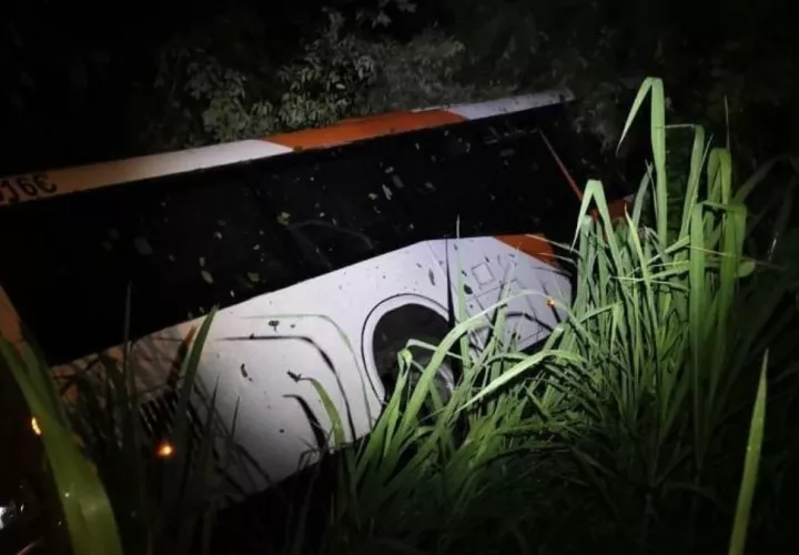 Metrobús termina volcado a orilla de carretera en Colón