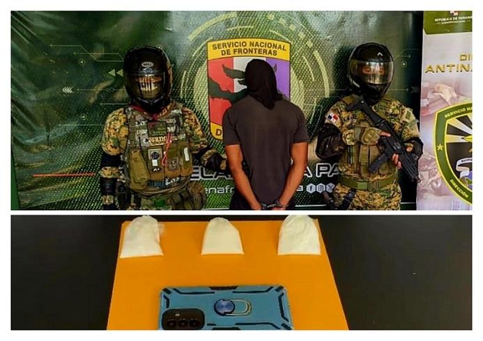 Panamá- Un ciudadano que mantenía en su poder tres bolsas transparentes con un polvo blanco, presuntamente cocaína, fue aprehendido en Chiriquí por unidades antinarcóticos y el Grupo de Reacción Inmediata Motorizada (Grim) del Servicio Nacional de Fronteras (Senafront).