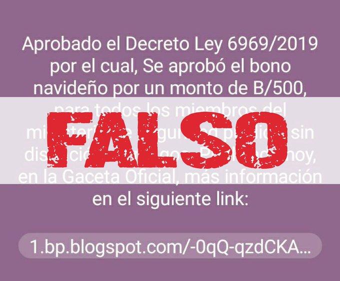 El Ministerio de Seguridad, a través de su cuenta de Twitter, aclaró que es falsa la información que circula por las redes sociales sobre un supuesto bono de 500 dólares para los funcionarios de la institución y miembros de los estamentos de seguridad.