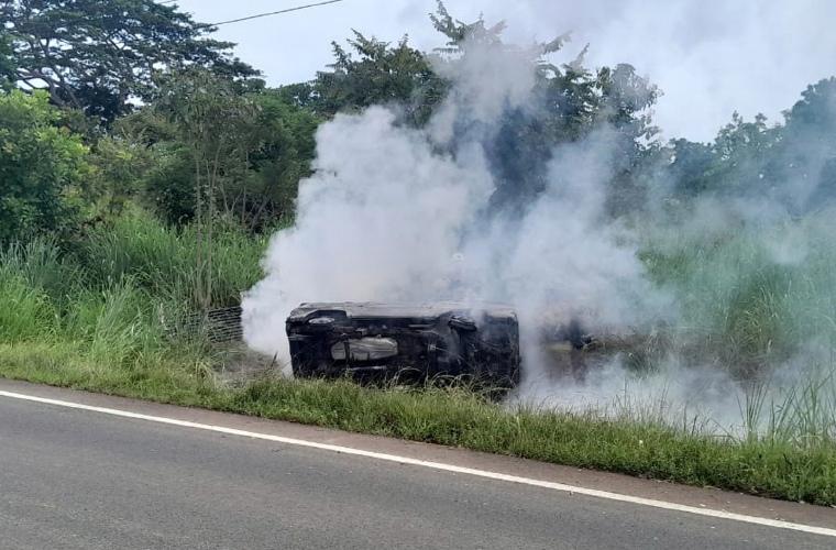 En un panel viajaban las 3 personas con equipo para cortar hierba y recipientes con gasolina, lo que pudo provocar el fuego.