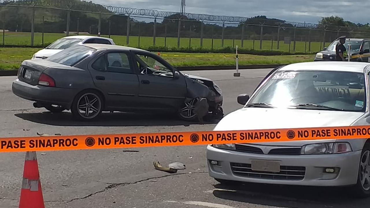 Un accidente de tránsito entre dos vehículo sedanes dejó una víctima fatal la tarde de este lunes en la vía Red Grey próximo al aeropuerto Enrique Malek en David, a pocos metros de donde se mantenía un reten de la Policía Nacional.