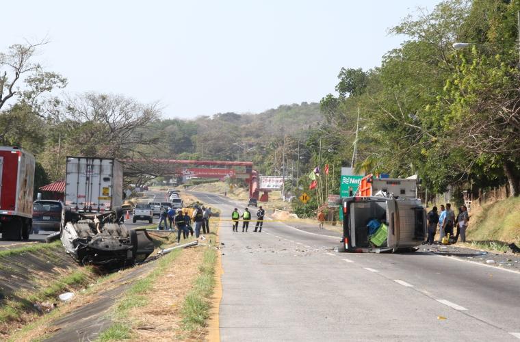 Tras el fuerte impacto, el auto tipo panel, quedó volcado sobre un costado, de donde fue rescatada Maryi De La Cruz, quien falleció luego de ingresar al Cuarto de Urgencias del hospital Nicolás Solano en La Chorrera.