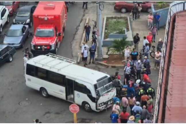 Una mujer, de aproximadamente 64 años, se encuentra en estado delicado tras ser atropellada por el conductor de un bus, tipo coaster, de la ruta interna Punta Delgadita - Mercado Público. El incidente ocurrió alrededor de las 11 de la mañana de este sábado, en la intersección de la avenida B y la calle 5, cerca del mercado, en la ciudad de Santiago, provincia de Veraguas.