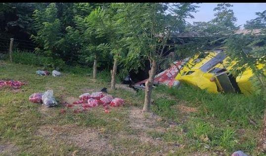 El accidente tuvo en horas de la mañana cuando, por razones aún desconocidas, la mula que transportaba una gran cantidad de refrescos, presuntamente destinados para la distribución en la región, se salió de la calzada de rodamiento y cayó varios metros hacia abajo del puente.