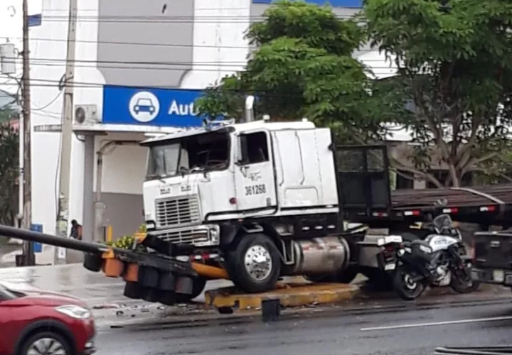 Una mula derribó un semáforo en la vía Interamericana, a la altura de Vista Alegre, en Arraiján, provincia de Panamá Oeste.