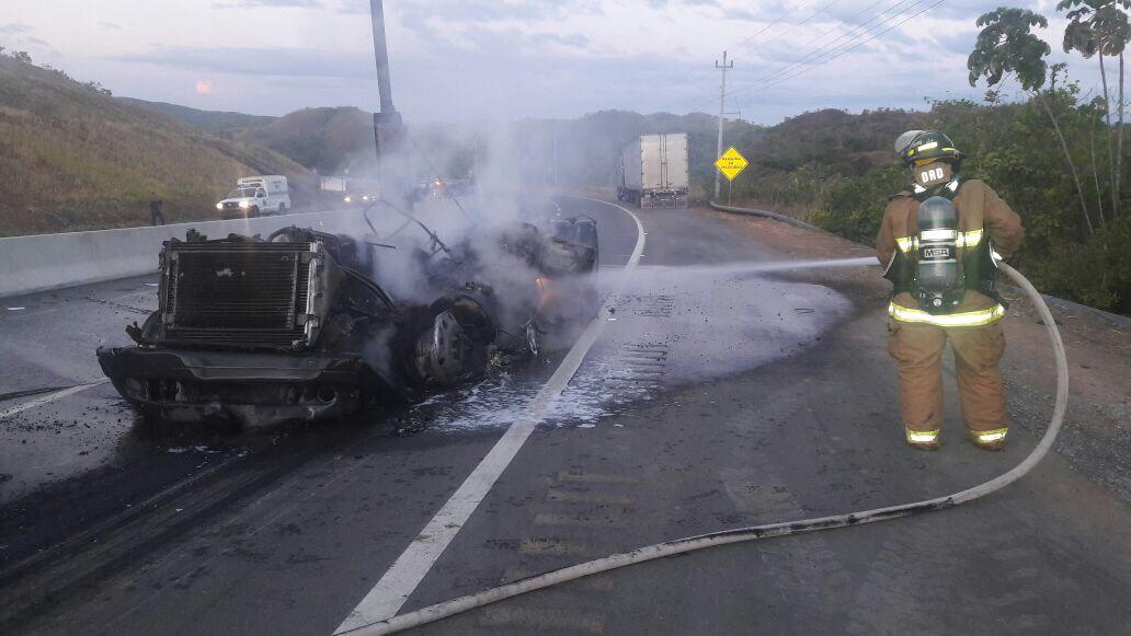 Hasta el lugar llegó personal de operaciones de extinción y paramédicos del Cuerpo de Bomberos de Panamá (BCBRP) zona regional de Veraguas quienes lograron sofocar las llamas antes de que consumieran en su totalidad el contenedor que transportaba la mercancía.
