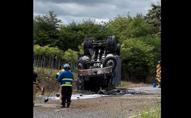 El vehículo pesado quedó atravesado en la vía, ocasionando un caos vial en la zona.