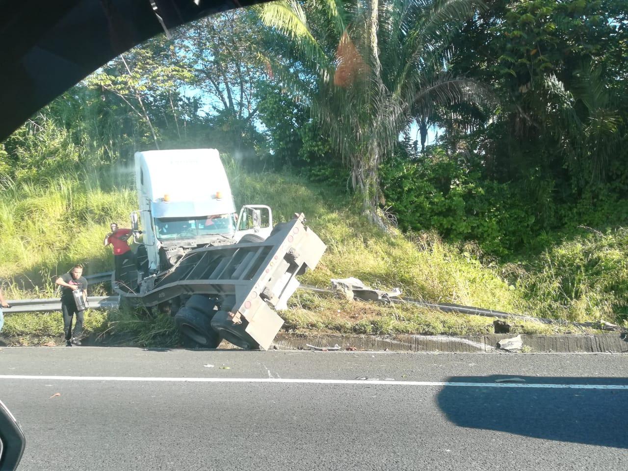 El conductor de la mula colisionó contra una cuneta y se salió de la vía, a la altura del kilómetro 80 de la vía rápida.