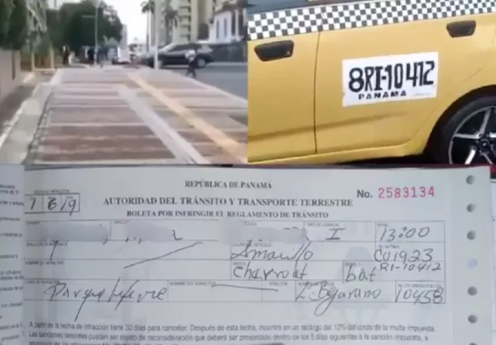 Unidades de la Dirección Nacional de Operaciones de Tránsito de la Policía Nacional multaron al conductor del taxi, con matrícula 8RI-10412, por manejar sobre la acera de adoquines en la avenida Justo Arosemena. Todo fue captado a través de un video que circuló por las redes sociales.