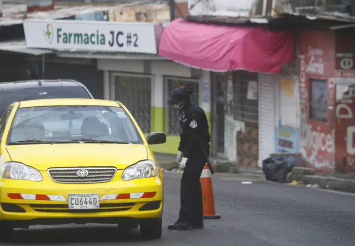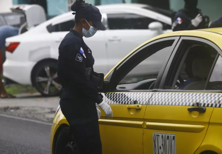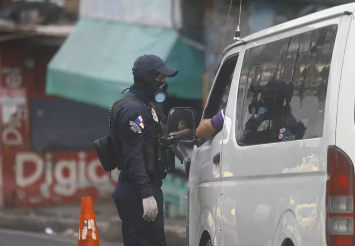 En el sector de La Pesa, Veranillo, distrito de San Miguelito, agentes policiales verifican que conductores y transeúntes tenga el derecho de circulación establecido por días y de acuerdo al sexo y último número de la cédula.