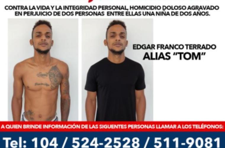 Una recompensa de $5mil ofrece la Policía Nacional, para quien brinde información que contribuya con la captura de Edgar Franco, alias "Tom", presuntamente vinculado al asesinato de Víctor Isaac Salazar, de 25 años, y su hija de dos años y medio de edad, en Panamá Oeste.