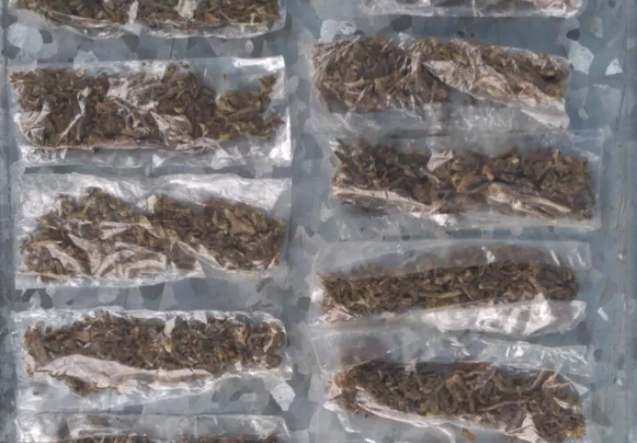 Agentes de la Fuerza Alfa decomisaron 81 carrizos con cocaína, 13 envoltorios con marihuana, 7 bolsitas con cocaína, 4 bolsitas con marihuana y una con crispy.