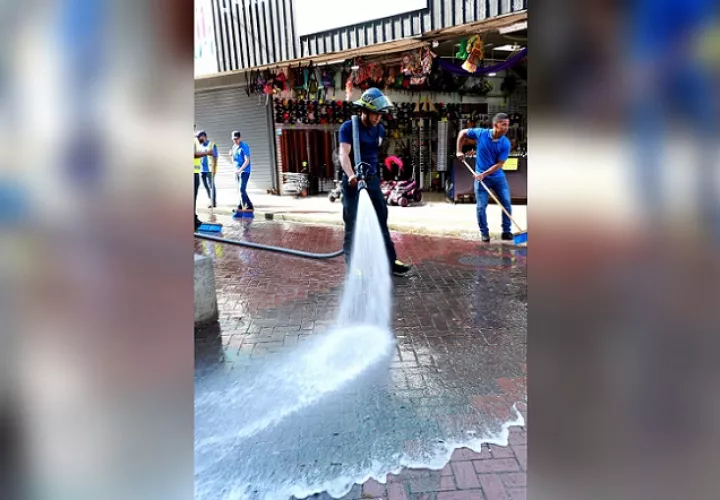 Personal de la Dirección de Servicios a la Comunidad de la Alcaldía de Panamá, con el apoyo del Cuerpo de Bomberos de Panamá, efectuó el lavado y limpieza profunda desde la Plaza 5 de Mayo hasta el Parque de Santa Ana.