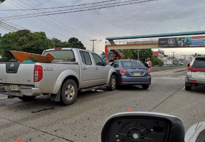Una colisión entre un sedán marca Hyundai I30 y un “pick up” doble cabina marca Isuzu, se registró la tarde de ayer, domingo, en la vía Interamericana, a la altura de Vista Alegre, Arraiján. No hubo lesionados.