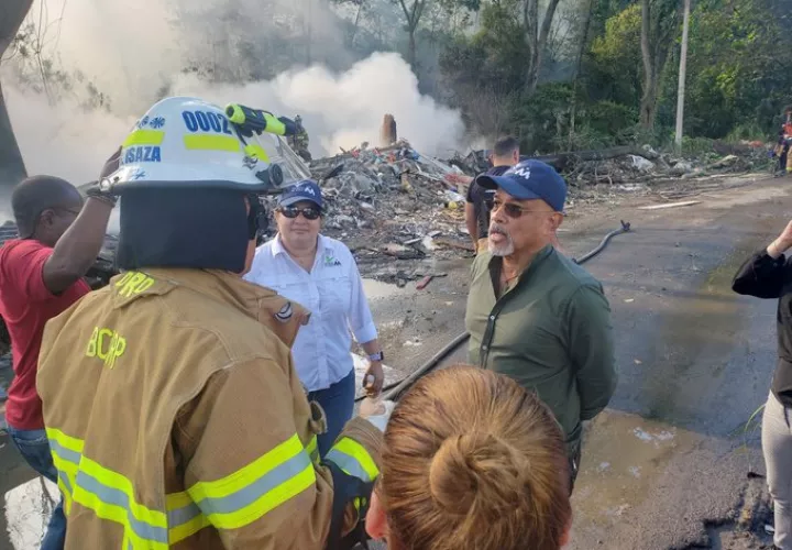 Otro incendio en Guna Nega. Más de 50 bomberos de las estaciones de Carrasquilla y Betania desarrollan hoy labores para sofocar un incendio que se generó en un vertedero improvisado, muy cerca del relleno sanitario de Cerro Patacón.