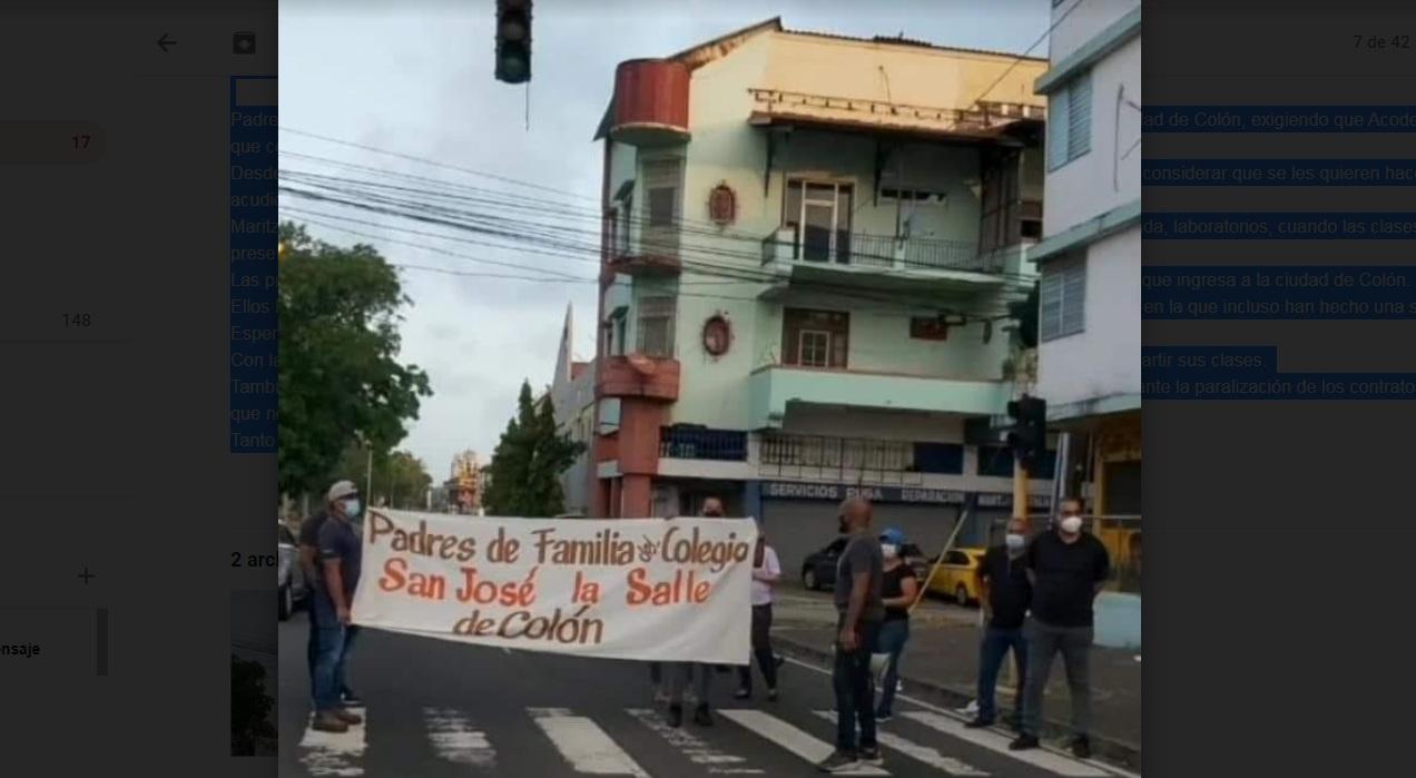 Padres de familia del Colegio La Salle de Colón, salieron a protestar la mañana del lunes, en la entrada de la ciudad de Colón, exigiendo que Acodeco intervenga en lo que consideran abuso de parte de la administración del plantel educativo.