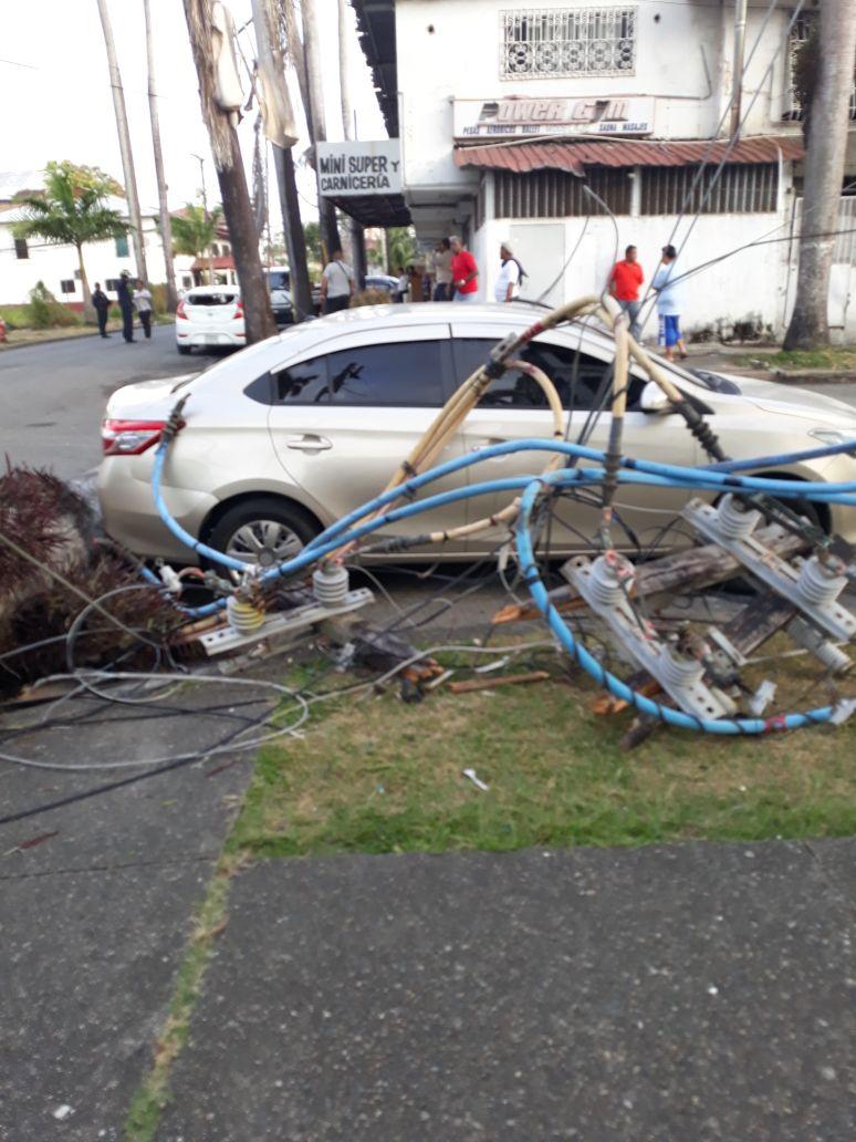 Los autos sufieron daños en la carrocería al igual que el tendido eléctrico a consecuencia del fuerte impacto.