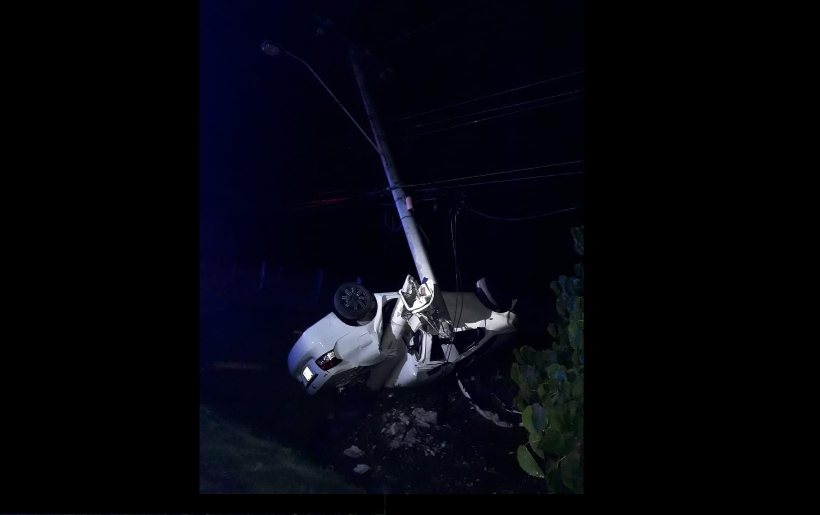 El vehículo involucrado terminó volcado e incrustado en un poste del tendido eléctrico, afectando el suministro de energía en la zona.