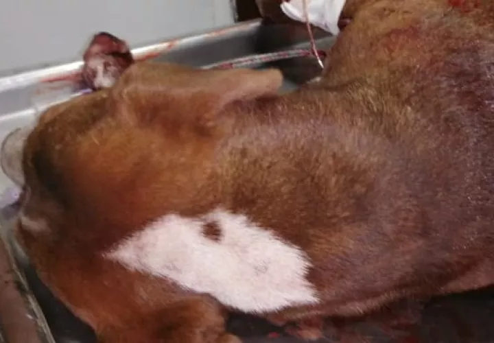 Señaló que el canino fue operado en una clínica veterinaria el sábado en horas de la tarde, pero falleció ayer debido a la gran cantidad de sangre que perdió.