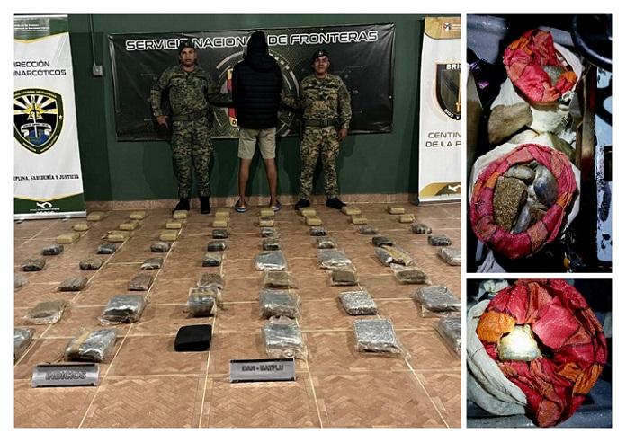 Pese a las maniobras evasivas, el presunto narcotraficante fue aprehendido y la mercancía ilegal, que estaba en varios sacos de colores y que se presume sea marihuana, fue decomisada.