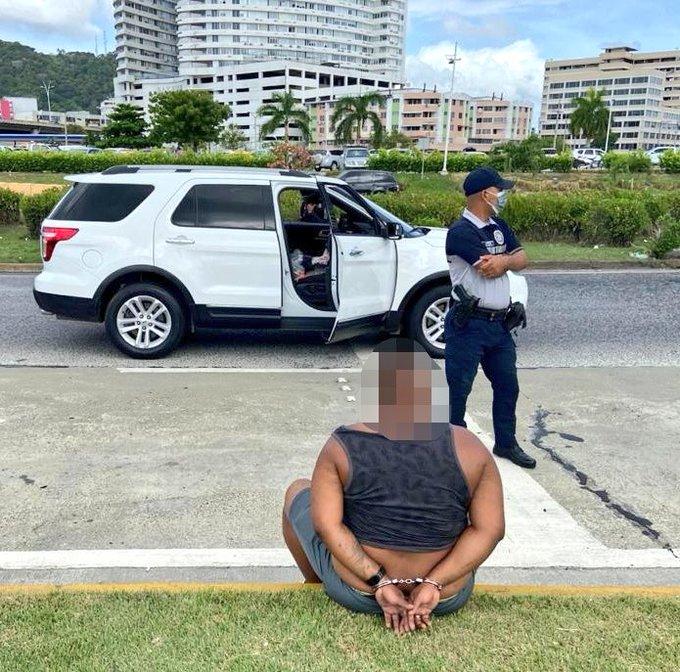Tras una persecución policial lograron aprehender al sospechoso en la Cinta Costera. Inmediatamente se procedió a la revisión al vehículo donde se halló sustancias ilícitas y luces de escoltas.